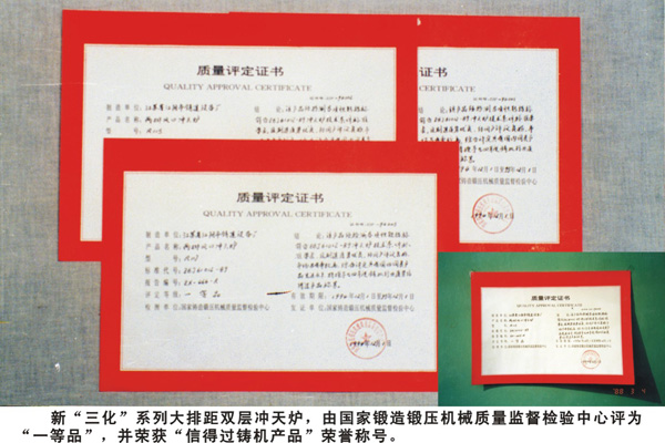 評為“一等”鑄機產(chǎn)品,并獲“質(zhì)量信得過鑄機產(chǎn)品”稱號;